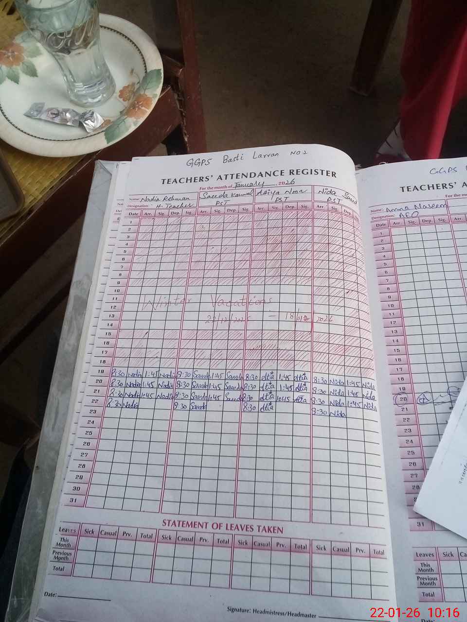 | Leave | Duty | Absent | Maternity | Medical | Ex- Pak |