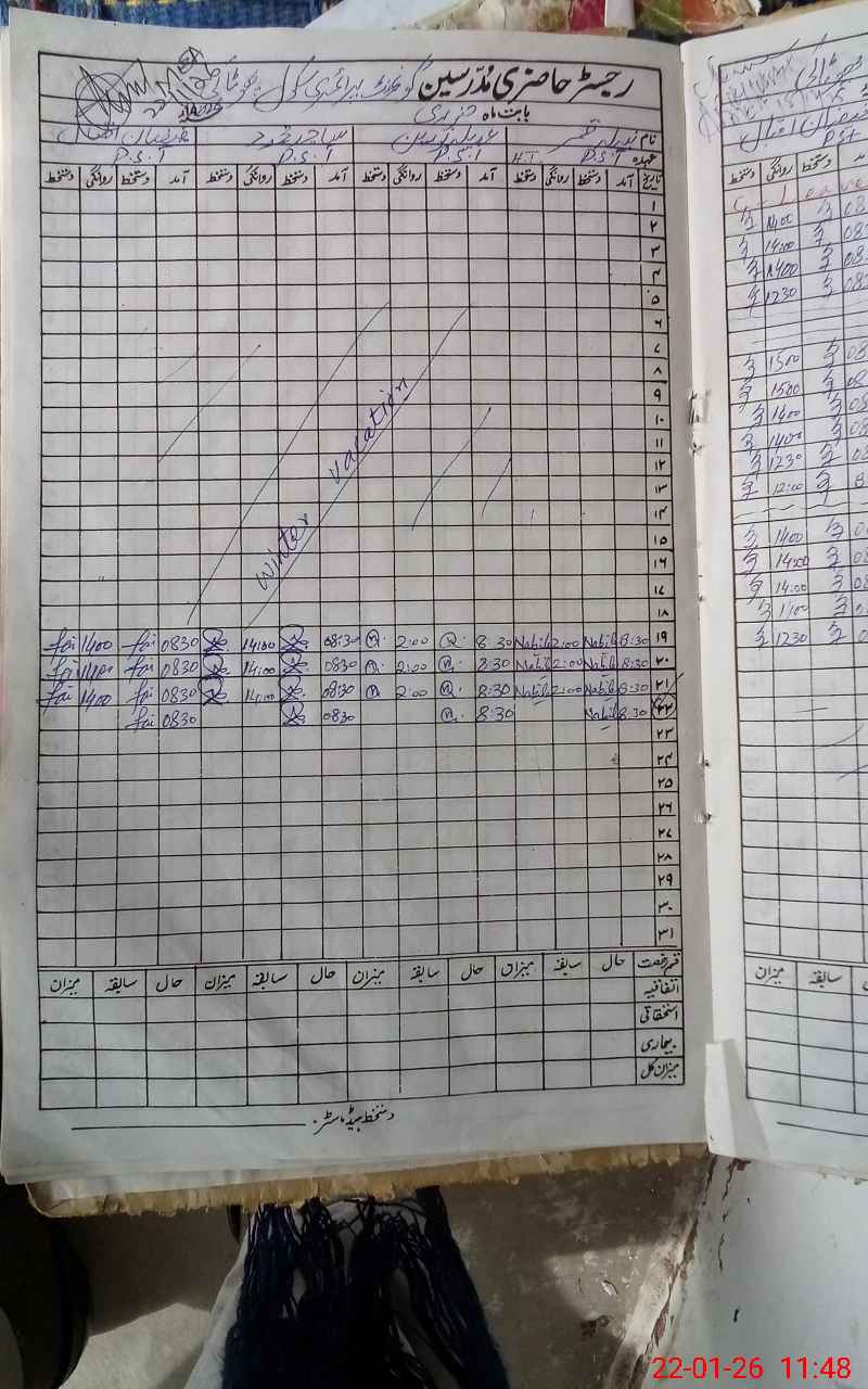 | CNIC | Full Name | Designation | R/C | Absence During Last Calender Month |