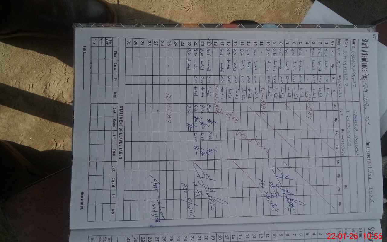 | CNIC | Full Name | Designation | R/C | Absence During Last Calender Month |