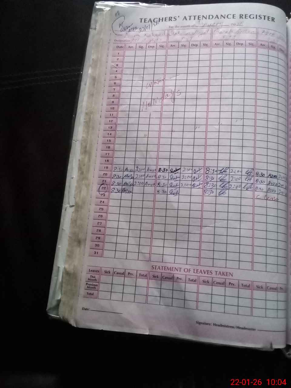 | Leave | Duty | Absent | Maternity | Medical | Ex- Pak |