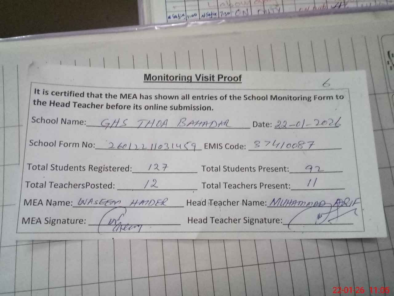 | EMIS Code: 37410087 | Name of School: GHS THOHA BAHADUR | |||