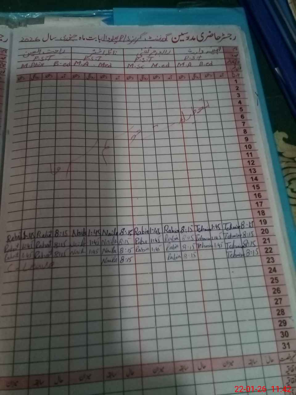 | CNIC | Full Name | Designation | R/C | Absence During Last Calender Month |