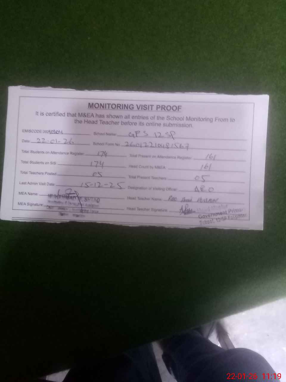 | EMIS Code: 39210104 | Name of School: GPS 12/SP P.O 8.S.P PAKPATTAN | |||