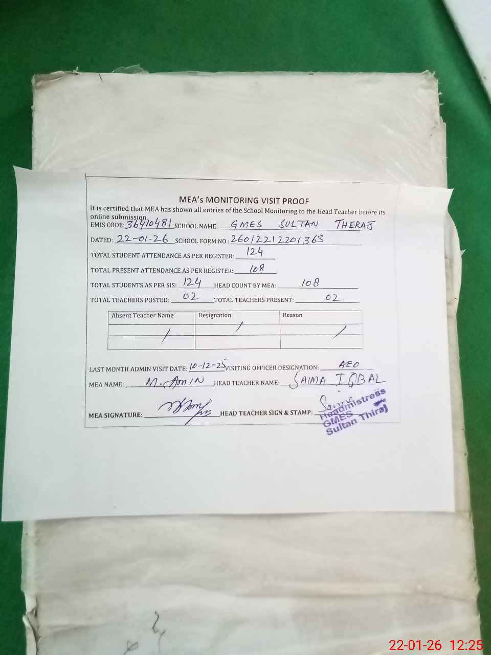 | EMIS Code: 36410481 | Name of School: GMES SULTAN THERAJ, ABDUL HAKIM | |||