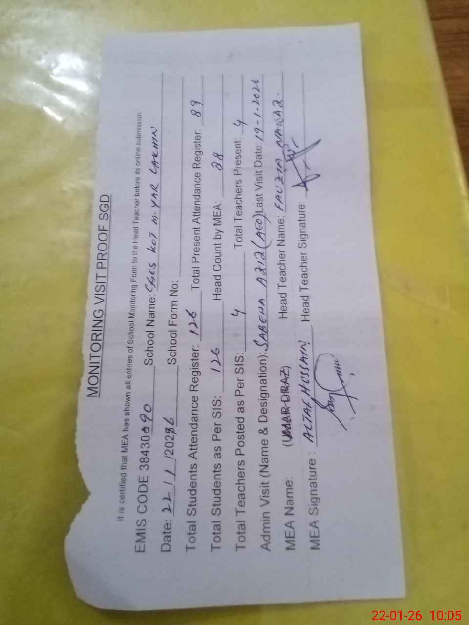 | EMIS Code: 38430090 | Name of School: GGES KOT MUHAMMAD YAR LAKHIN | |||