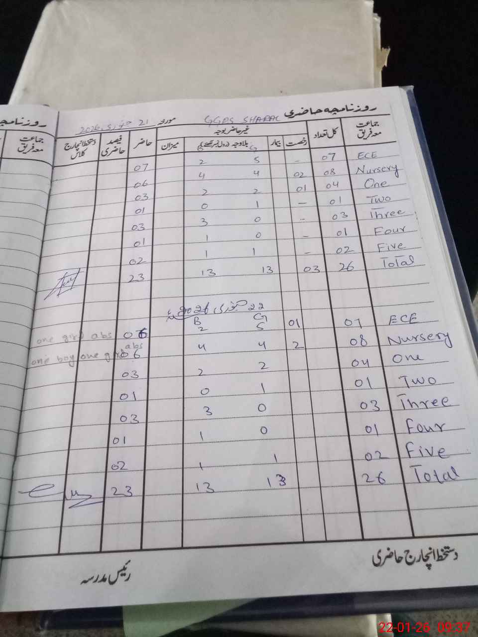 | Total Students Present | 0 | 6 | 4 | 1 | 3 | 1 | 2 | 23 | ||||||||