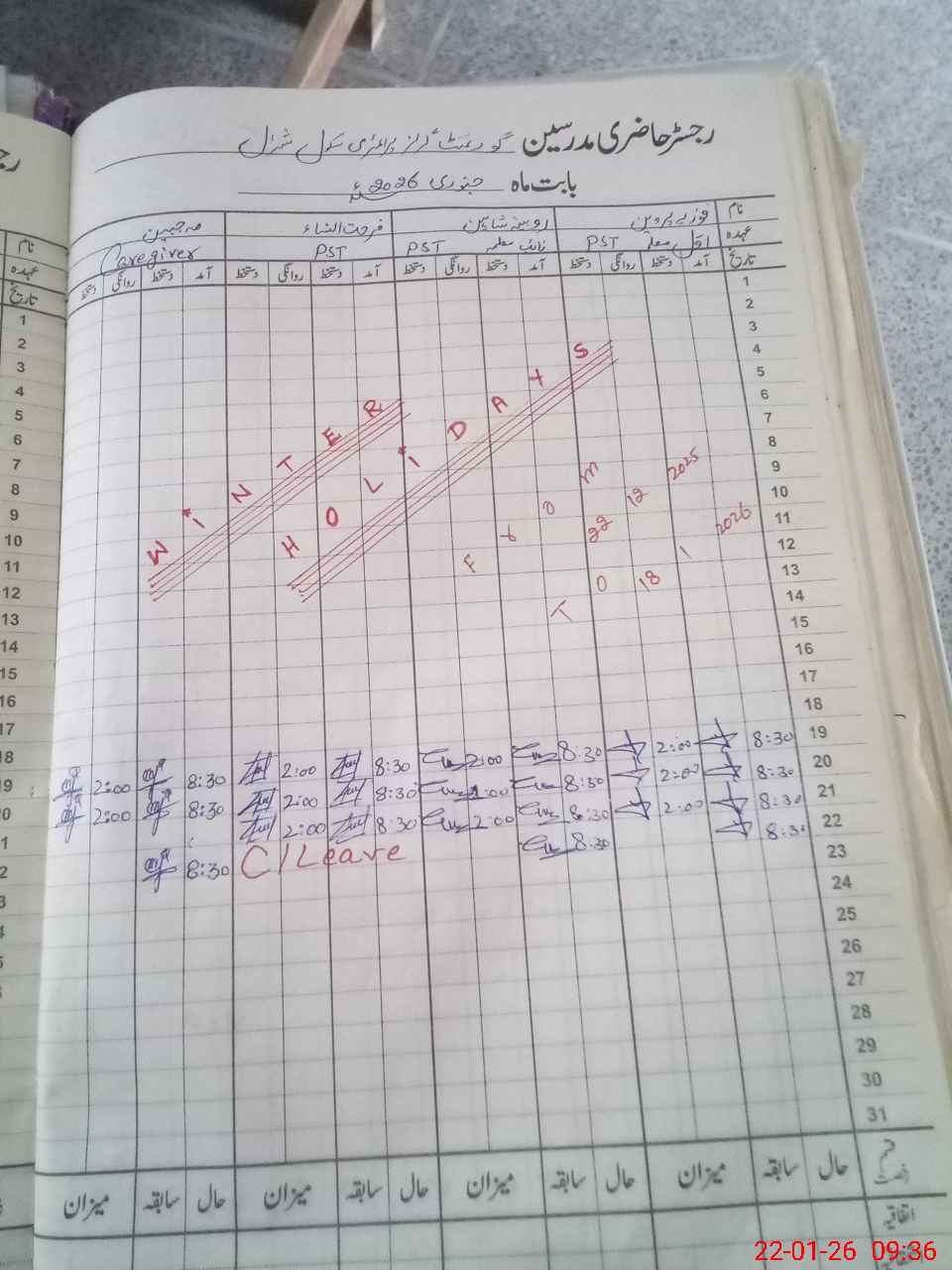 | CNIC | Full Name | Designation | R/C | Absence during last cal. month |