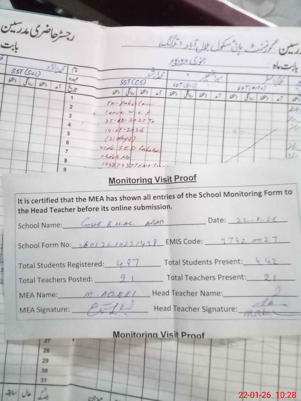 | EMIS Code: 37420027 | Name of School: GHS BILAL ABAD | |||
