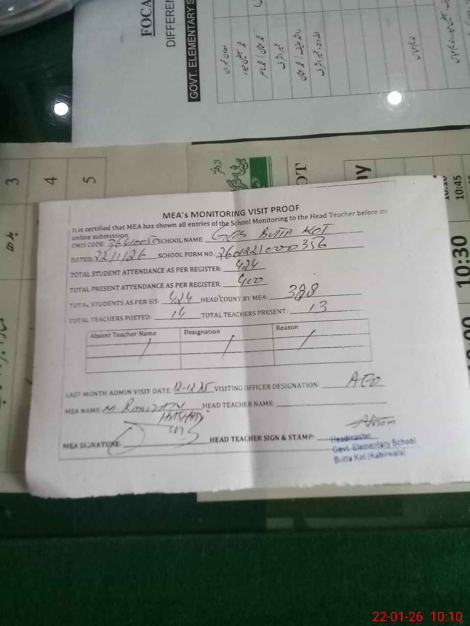 | EMIS Code: 36410050 | Name of School: GES BUTTA KOT, KABIRWALA | |||