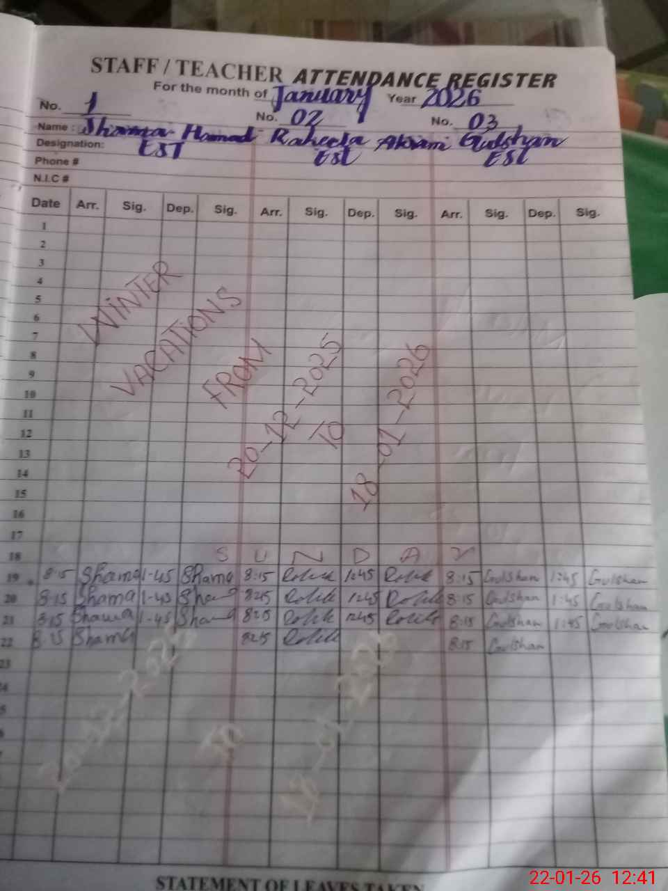 | 34**** | Ay**** Na**** | EST Physical Education | Regular | 0 | 0 | 0 | 0 | 0 | 0 | 0 | 0 | 0 | Absent (Un-Authorized) |