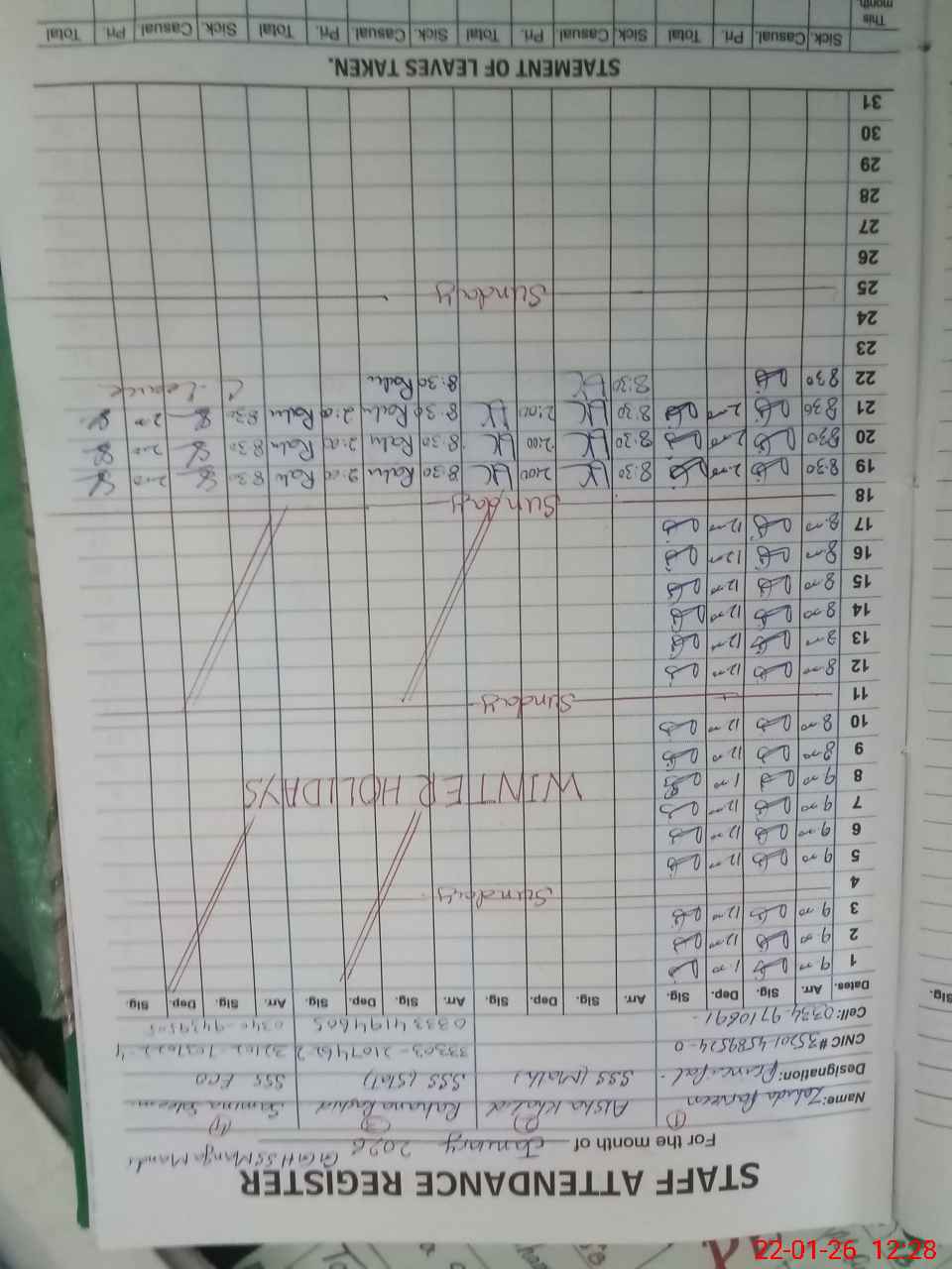 | 35**** | Sa**** Mu**** | SSS Biology | Regular | 0 | 0 | 31 | 0 | 0 | 0 | 0 | 0 | 0 | Absent (Un-Authorized) |