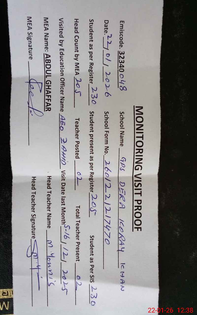 | EMIS Code: 32340048 | Name of School: GPS DERA KORAY KHAN | |||