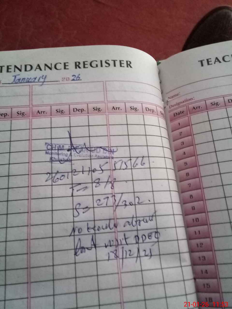 | Remarks (Use Separate Page if Required): gmps 23 mb student on sis 302 student on register 302 head count 279 no teacher absent last visit ddeo 18/12/25 class room repair needed new class room required 2 washroom need repair boundary wall 300 ft needs repair | |||||