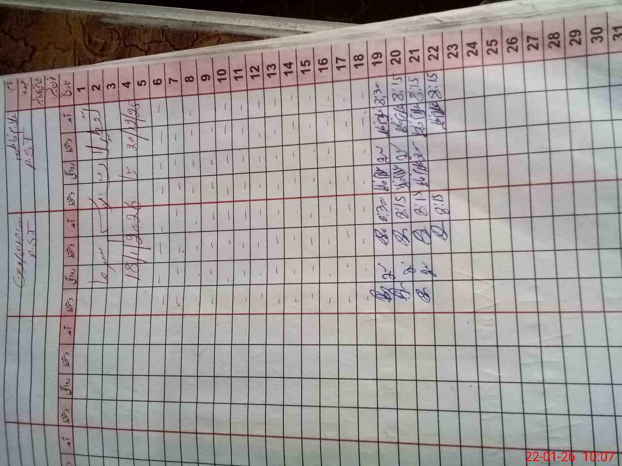 | CNIC | Full Name | Designation | R/C | Absence During Last Calender Month |