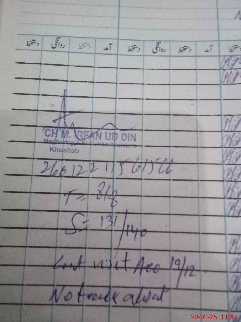 | Remarks (Use Separate Page if Required): GES 32 mb student on sis 140 student on register 140 head count 131 no teacher absent last visit aeo 19/12/25 2 washrooms need repair | |||||