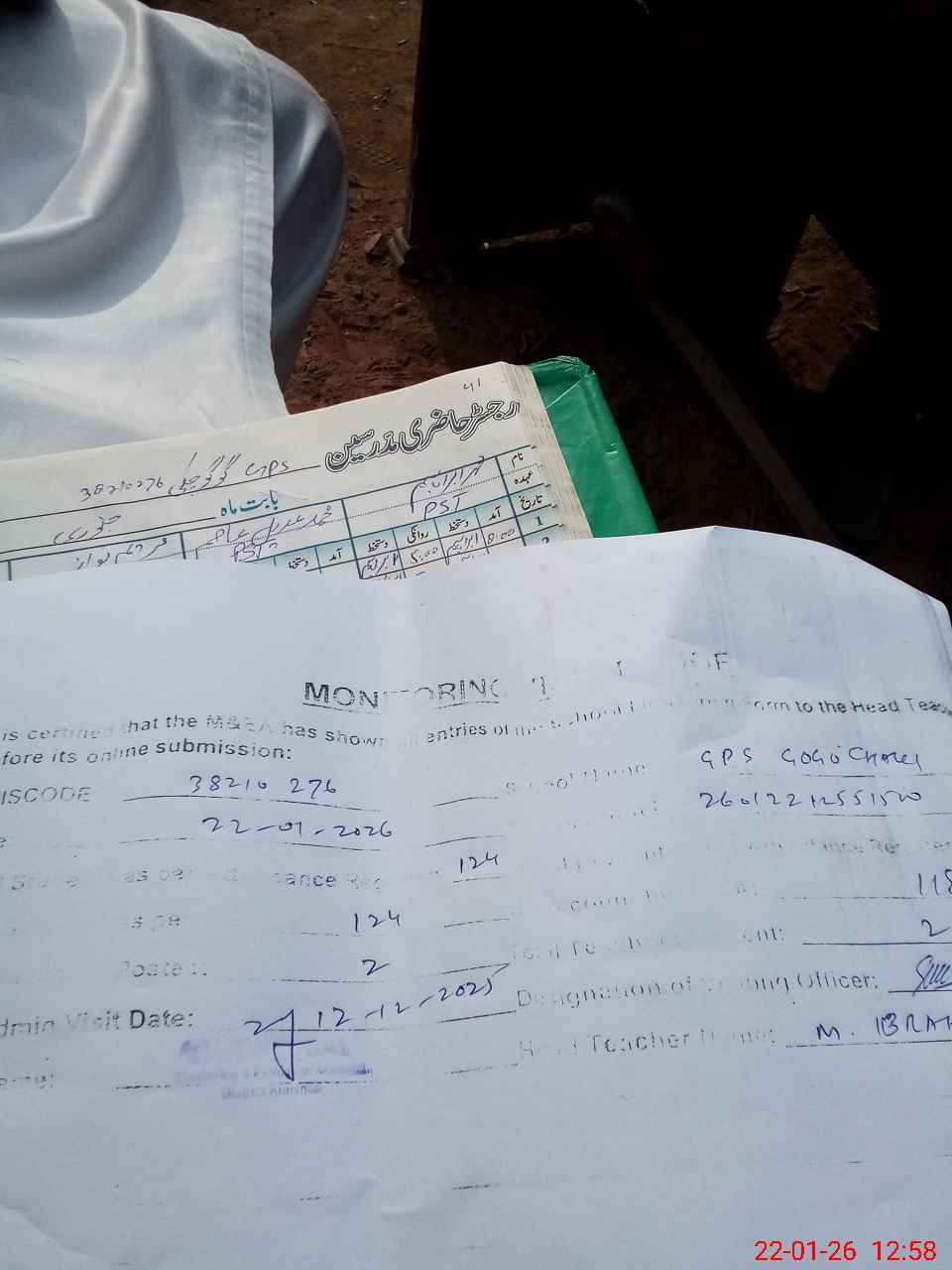 | Name: MU**** IB**** Designation: (School Headmaster's/Headmistress's) PST Phone/Cell Number: 03**** |