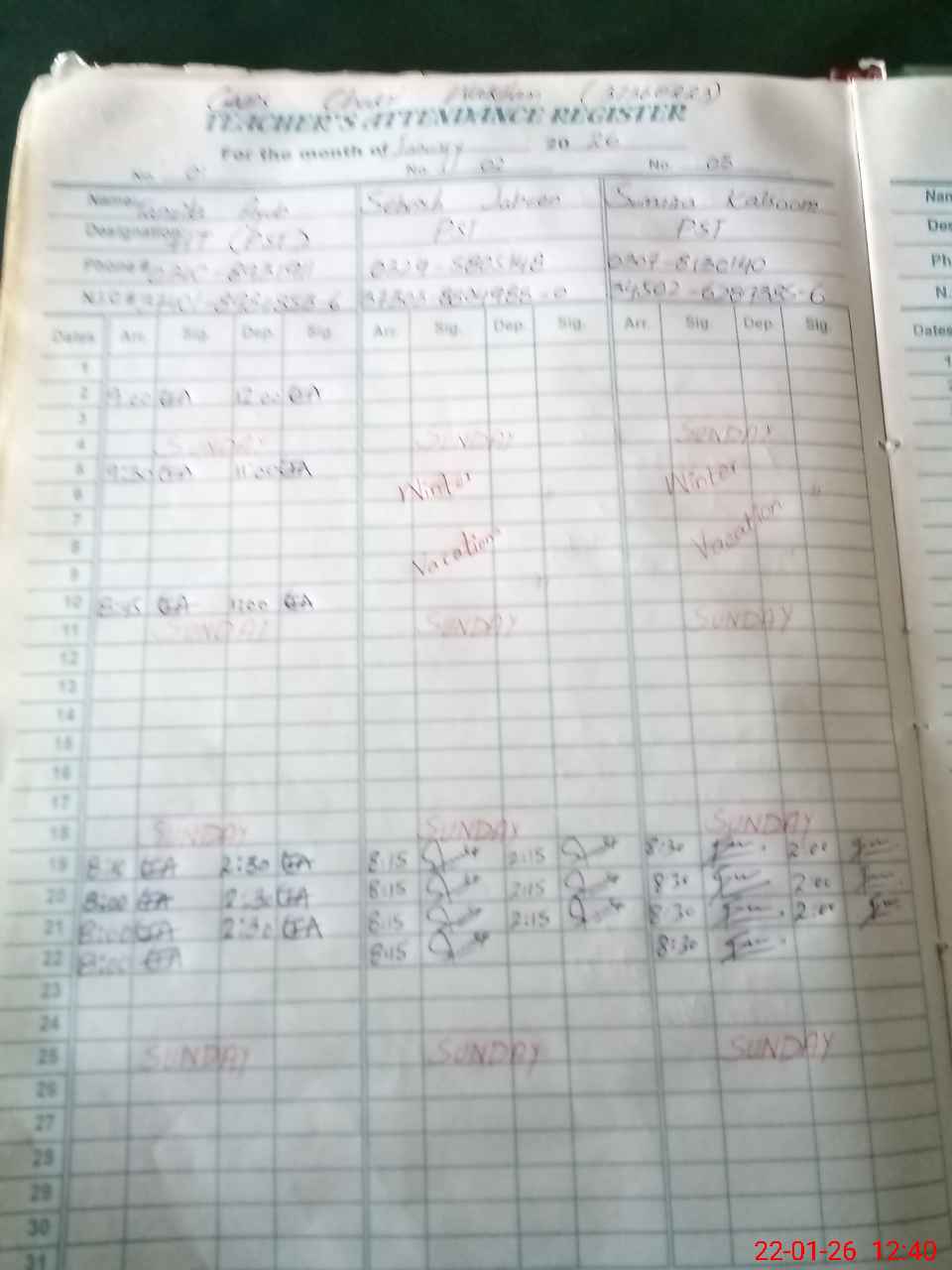 | Name: Ad**** Ja**** Designation: (School Headmaster's/Headmistress's) PST Phone/Cell Number: 03**** |