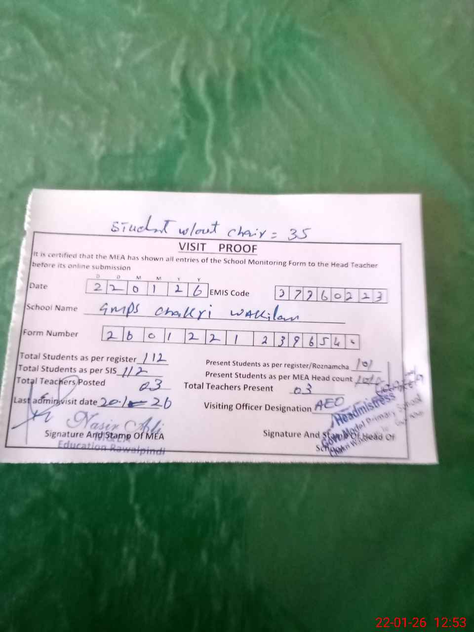 | EMIS Code: 37360223 | Name of School: GPS MODEL CHAKRI WAKIALAN | |||