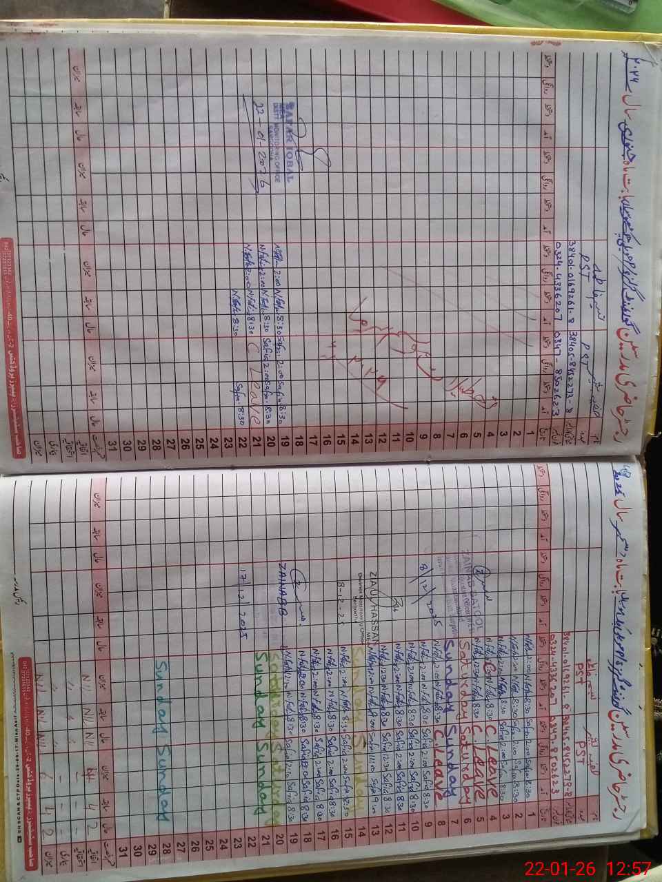 | CNIC | Full Name | Designation | R/C | Absence During Last Calender Month |