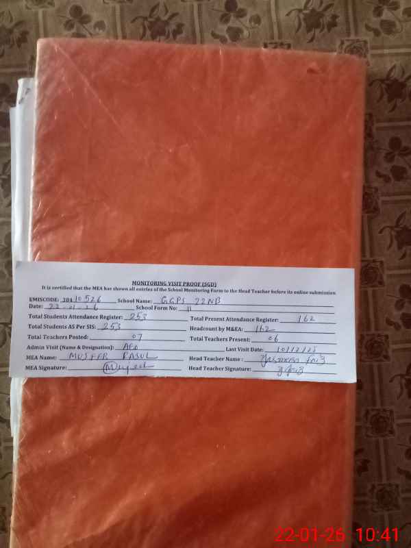 | EMIS Code: 38410526 | Name of School: GGPS CHAK NO.22 NB | |||
