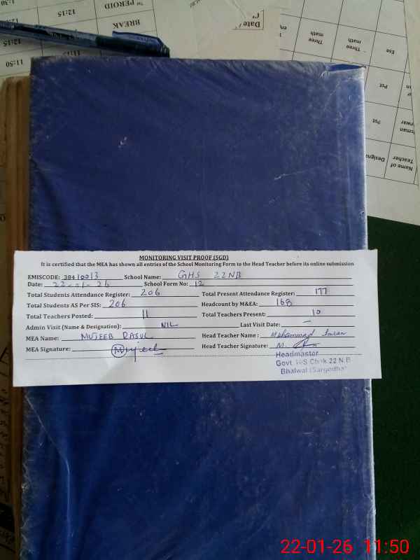 | EMIS Code: 38410013 | Name of School: GHS CHAK NO.22 NB | |||
