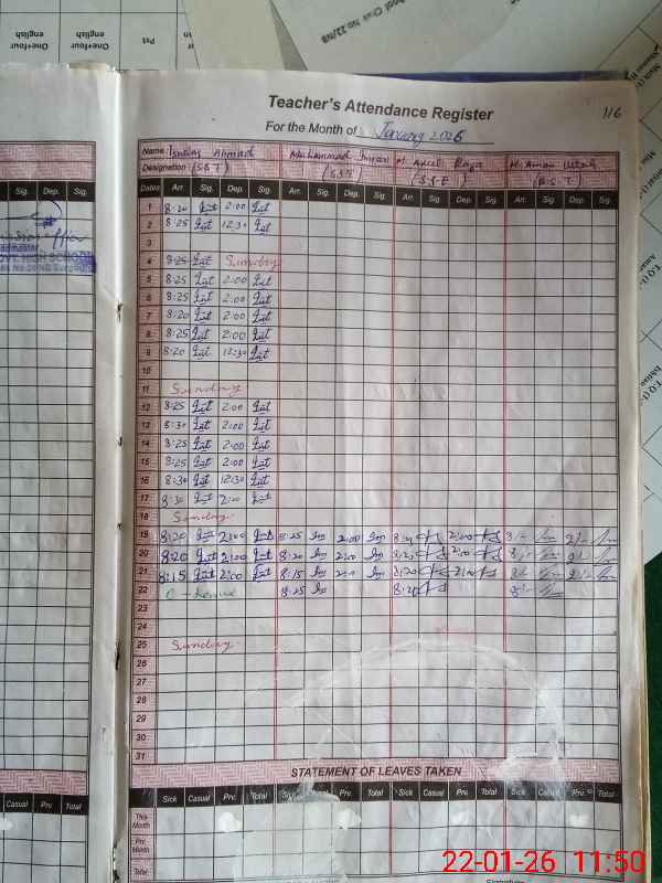 | Name: Is**** Ah**** Designation: (School Headmaster's/Headmistress's) Incharge HM Phone/Cell Number: 03**** |