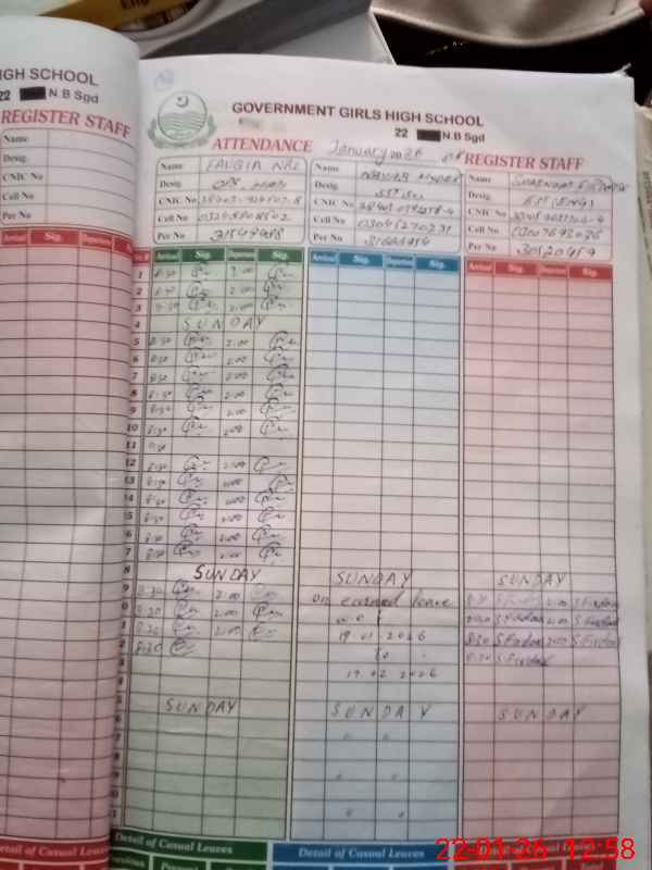 | CNIC | Full Name | Designation | R/C | Absence During Last Calender Month |