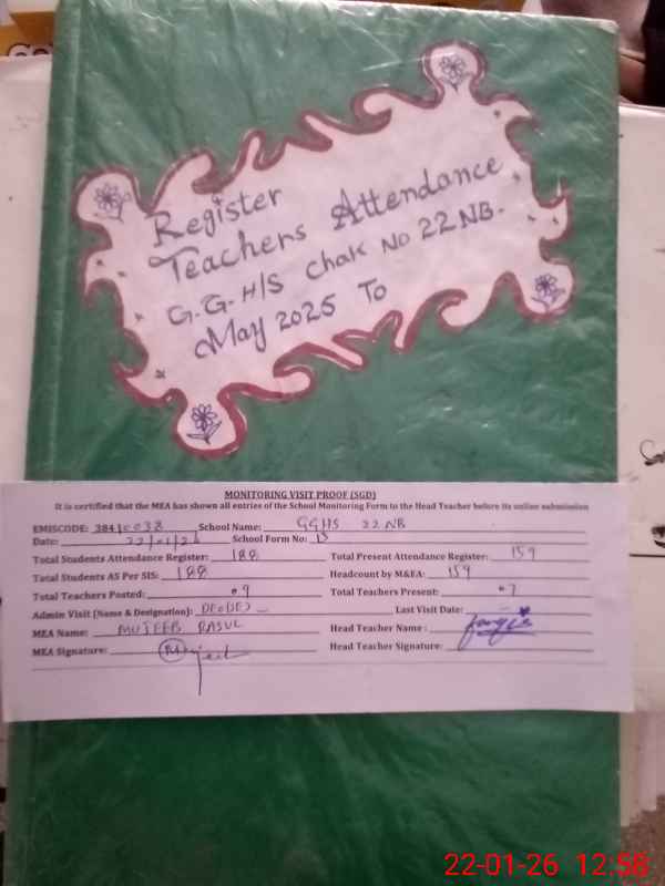 | EMIS Code: 38410038 | Name of School: GGHS CHAK NO.22 NB | |||