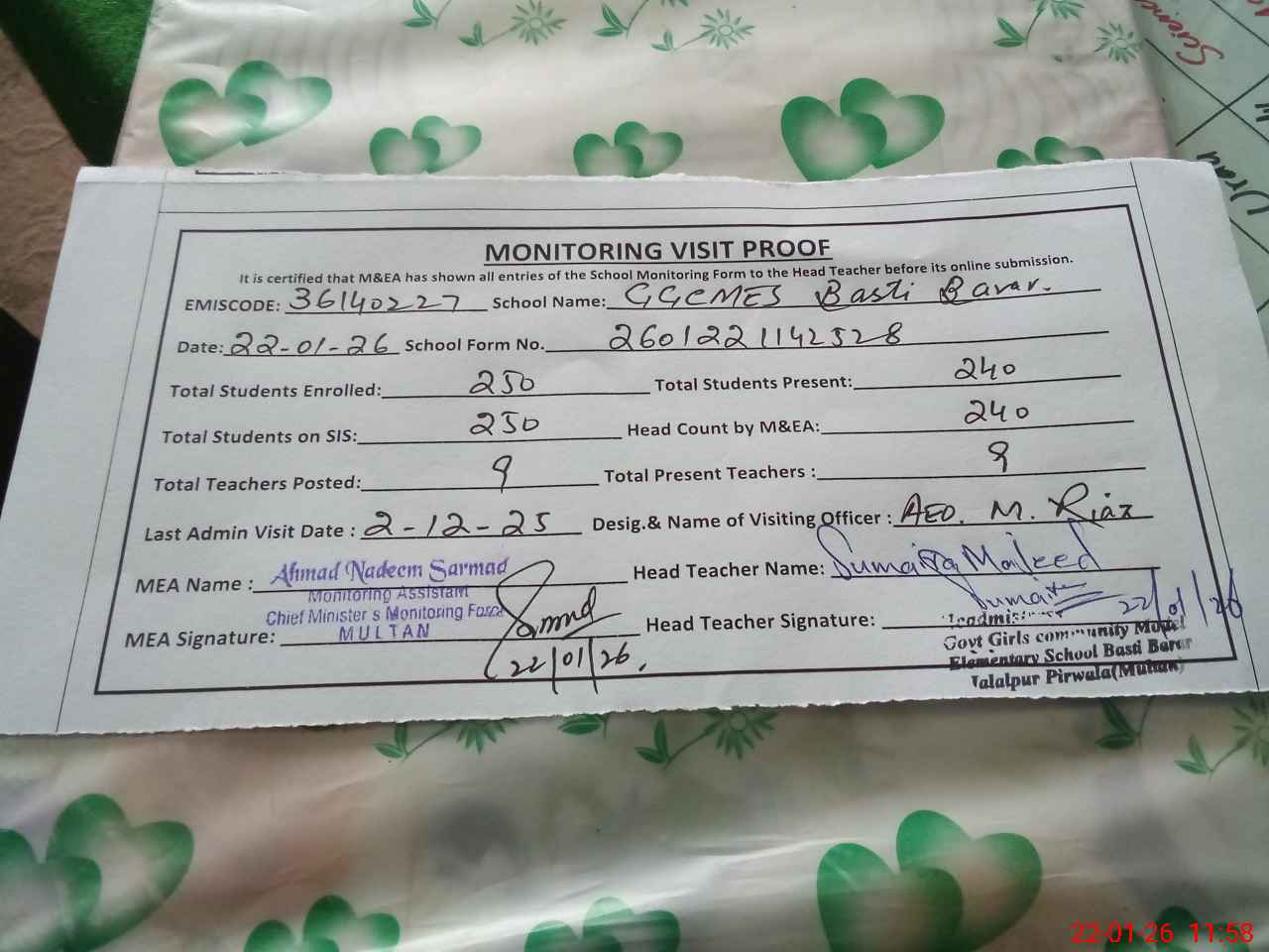 | EMIS Code: 36140227 | Name of School: GGCMES BASTI BARAR | |||