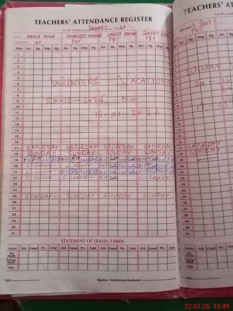 | Name: Ha**** Kh**** Designation: (School Headmaster's/Headmistress's) PST Phone/Cell Number: 03**** |