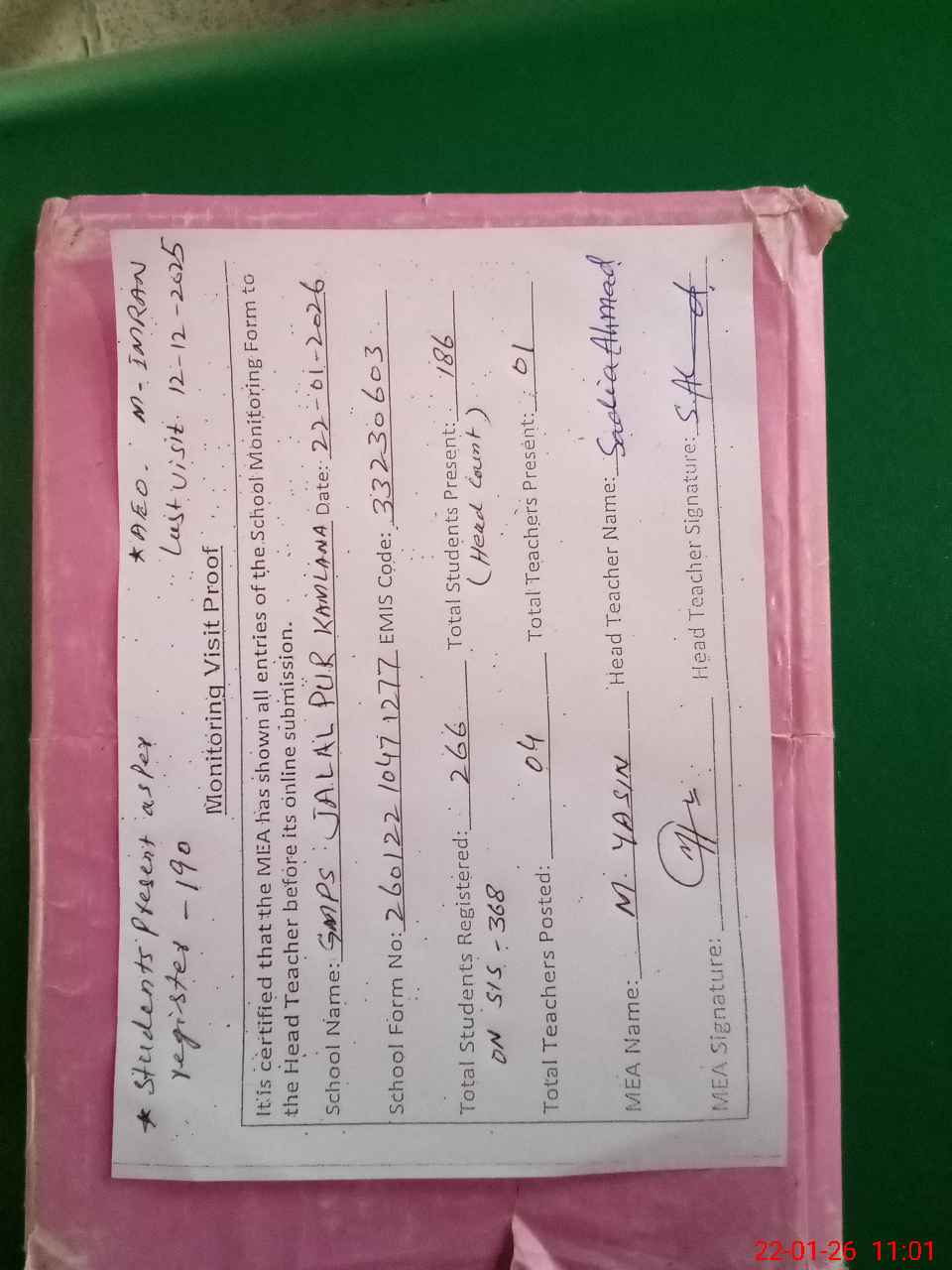 | EMIS Code: 33230603 | Name of School: GMPS JALAL PUR | |||