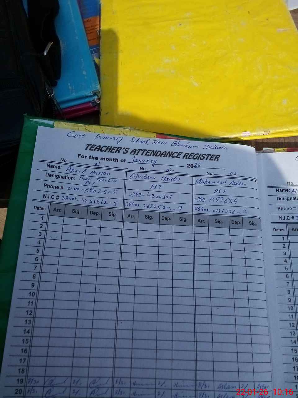 | Name: Aq**** Ha**** Designation: (School Headmaster's/Headmistress's) PST Phone/Cell Number: 03**** |