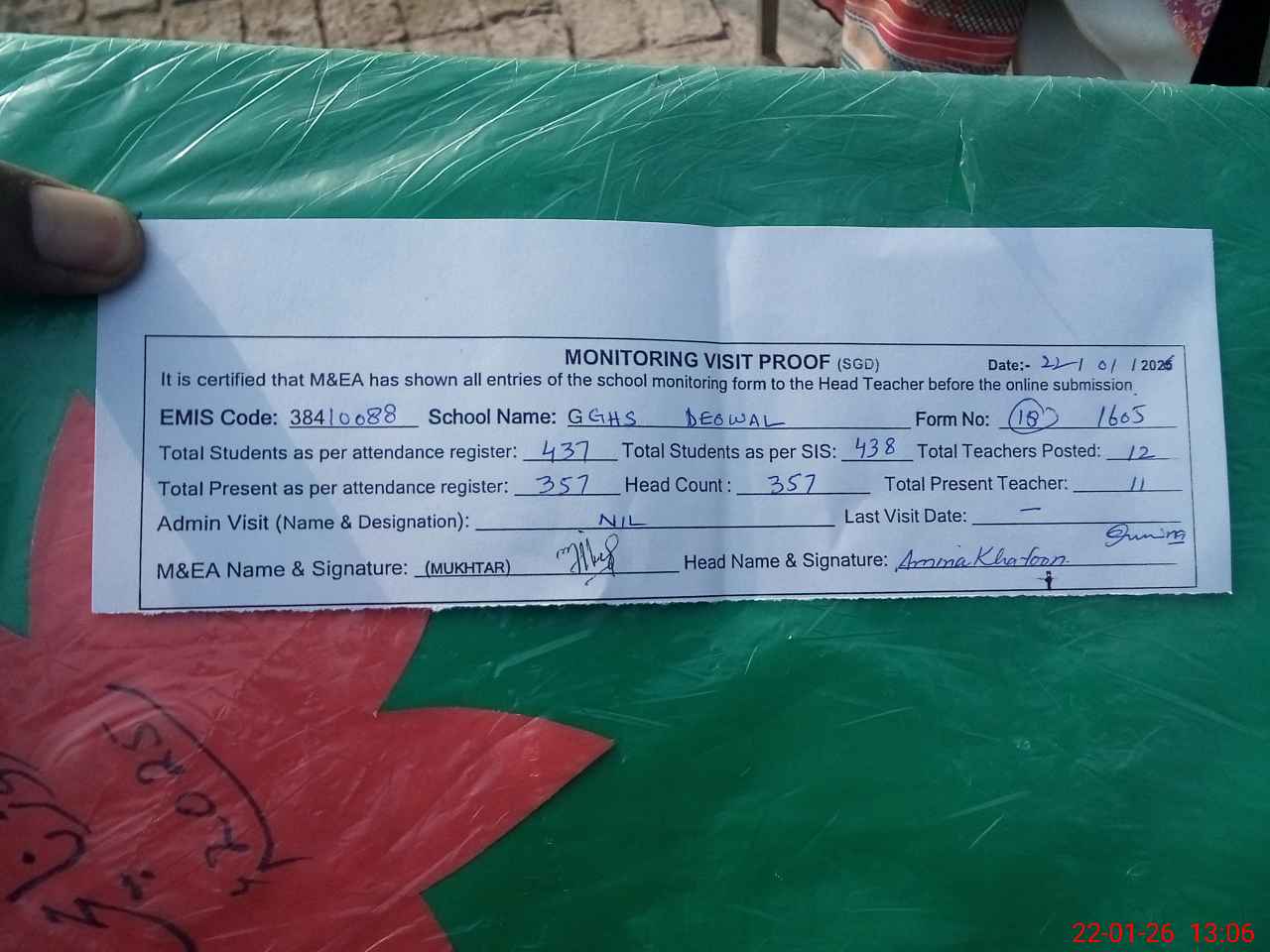 | EMIS Code: 38410088 | Name of School: GGHS DEOWAL | |||