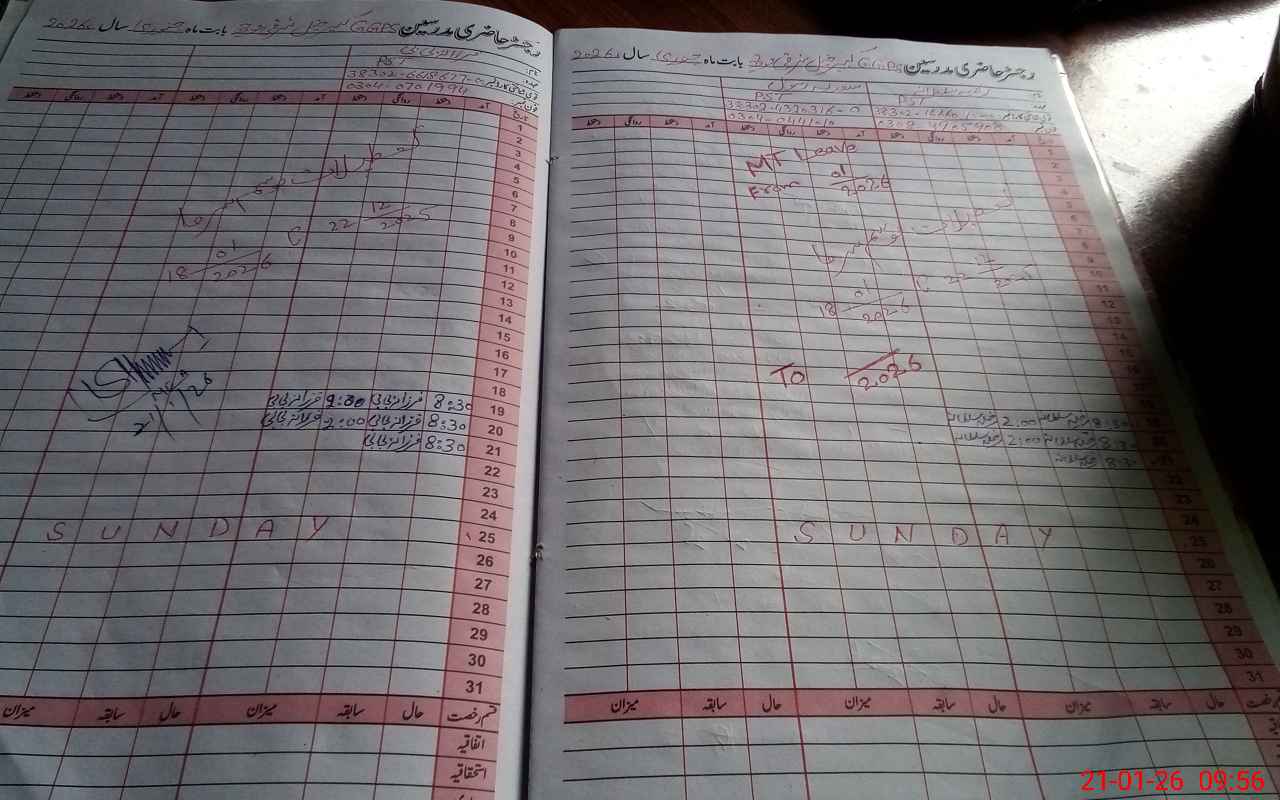 | CNIC | Full Name | Designation | R/C | Absence During Last Calender Month |