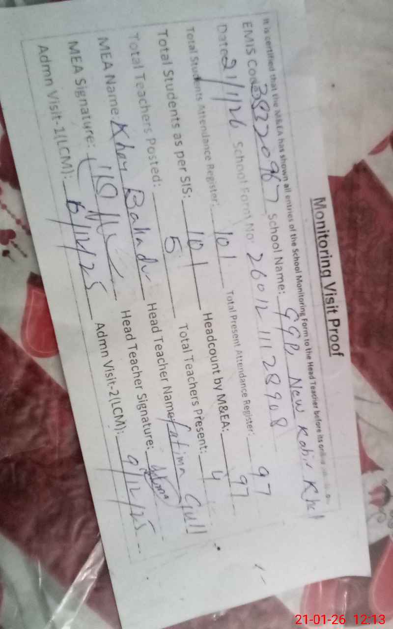 | EMIS Code: 38320967 | Name of School: GGPS NEW KABIR KHEL MOCHH | |||