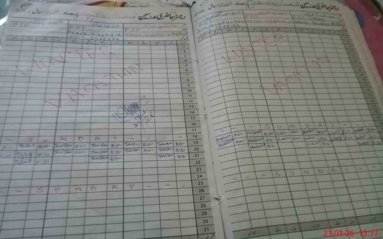 | CNIC | Full Name | Designation | R/C | Absence During Last Calender Month |