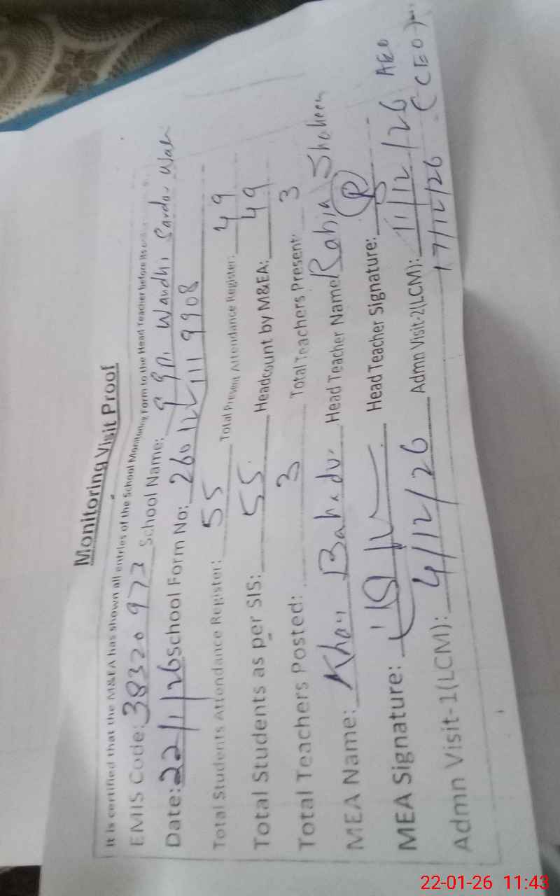 | EMIS Code: 38320973 | Name of School: GGPS WANDHI SARDAR KHAN WALI | |||
