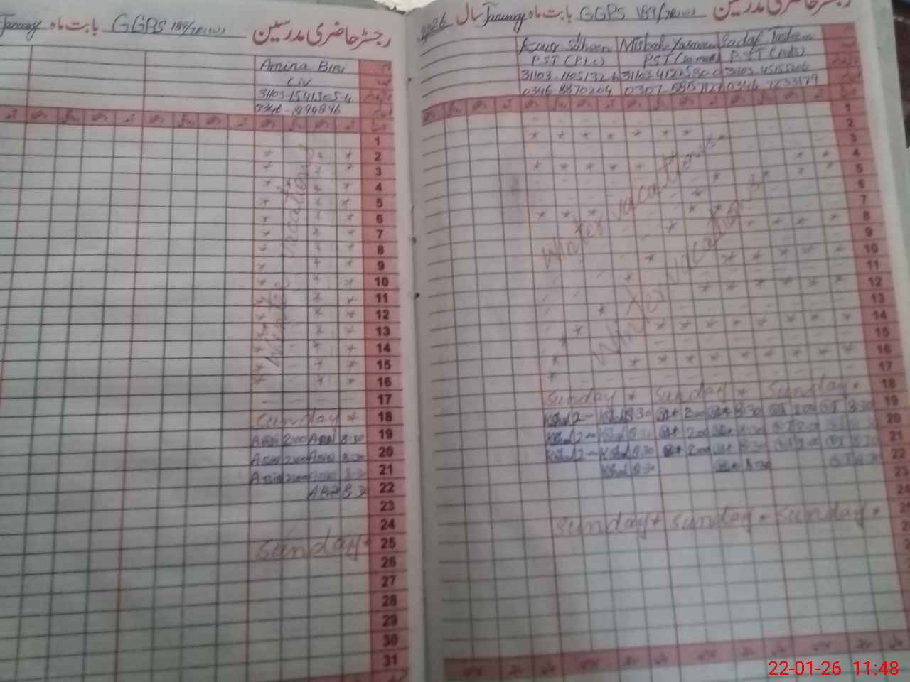 | CNIC | Full Name | Designation | R/C | Absence During Last Calender Month |