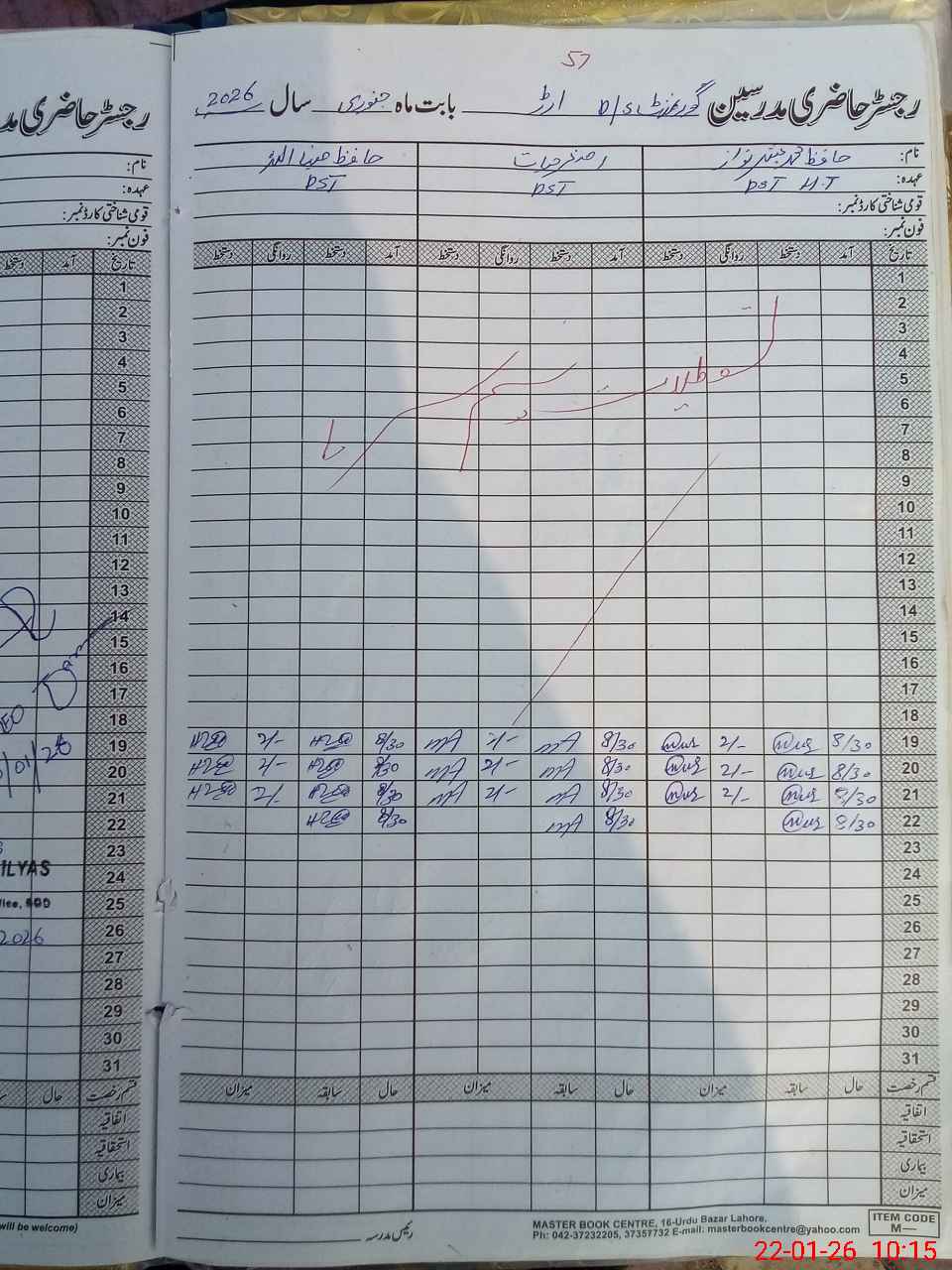 | CNIC | Full Name | Designation | R/C | Absence During Last Calender Month |