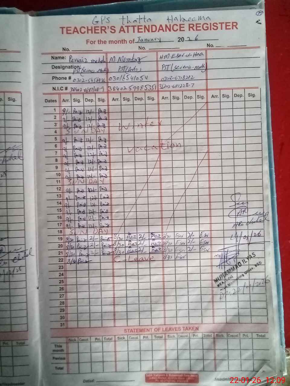 | Name: Ra**** Pe**** Me**** Designation: (School Headmaster's/Headmistress's) PST Science Phone/Cell Number: 03**** |