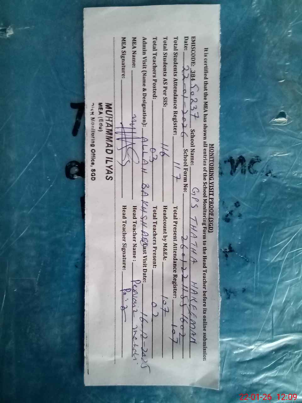 | EMIS Code: 38450237 | Name of School: GPS THATTA HAKEEMA | |||