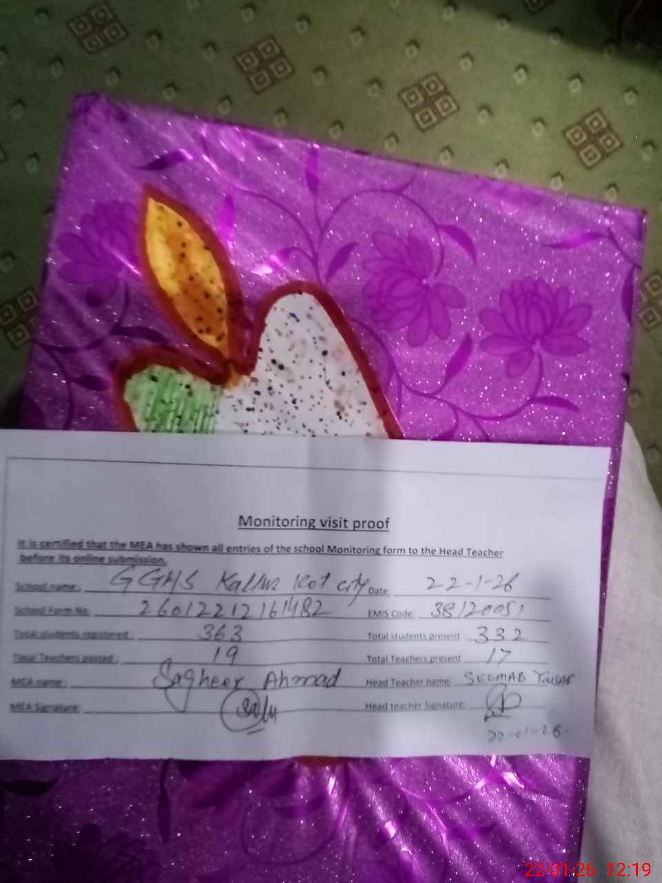 | EMIS Code: 38120051 | Name of School: GGHS KALLUR KOT CITY | |||