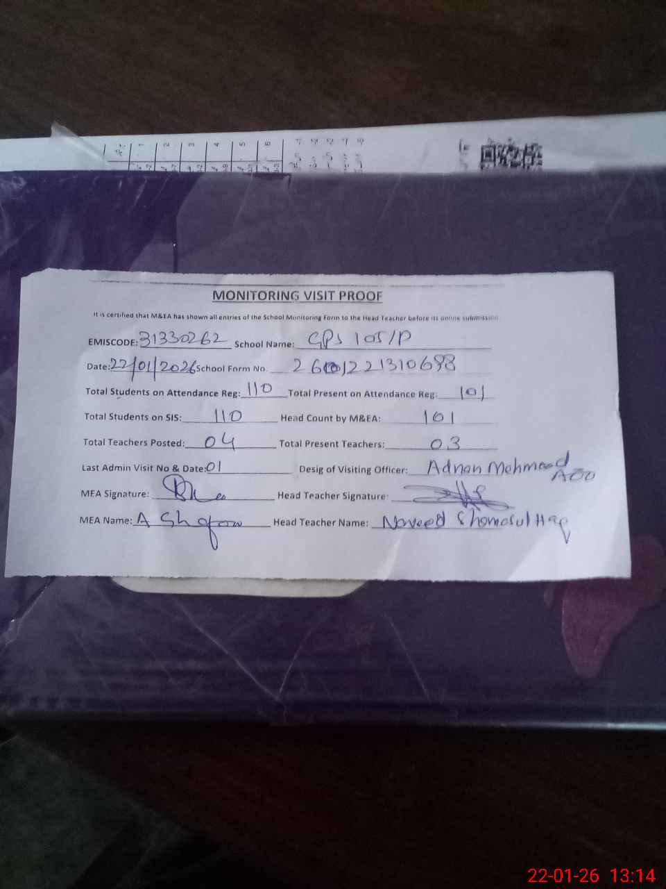 | EMIS Code: 31330262 | Name of School: GPS CHAK 105/P | |||