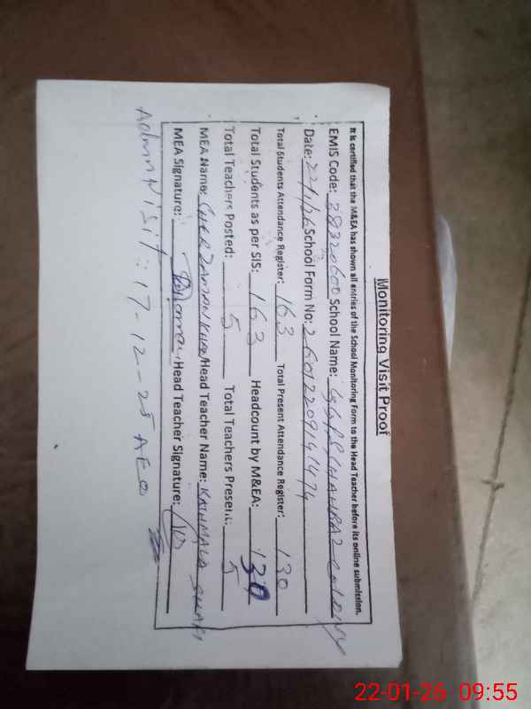 | Attendance Register | Head Teacher | MEA with School | Visit Proof |
