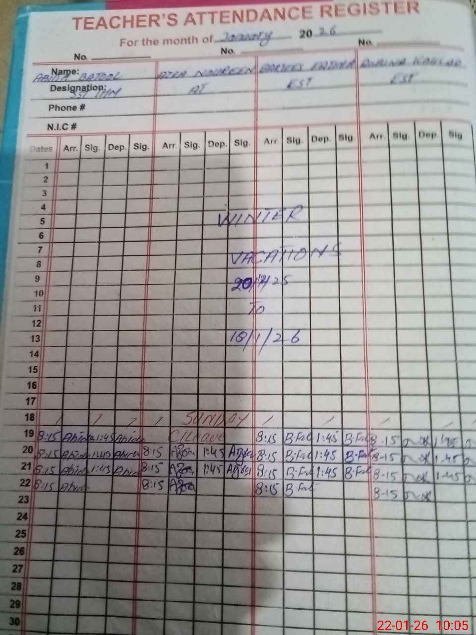 | Name: AB**** BA**** Designation: (School Headmaster's/Headmistress's) S.S.T.(GENERAL) Phone/Cell Number: 03**** |