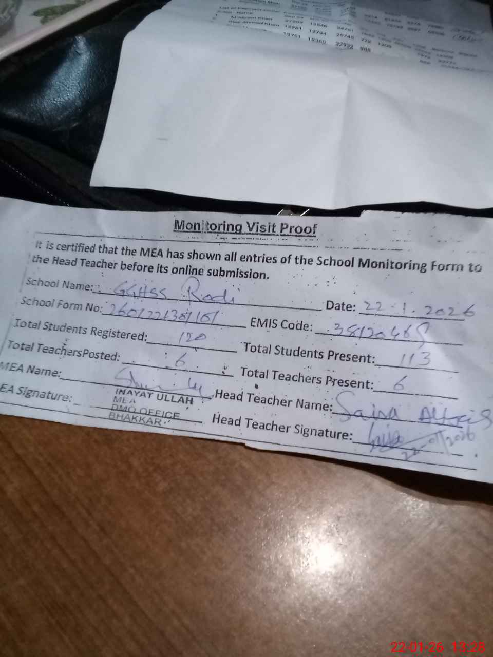 | Certified that this School was Inspected by the Undersigned MEA/DMO Today and the Information Stated Above is as Per Record. | |||||