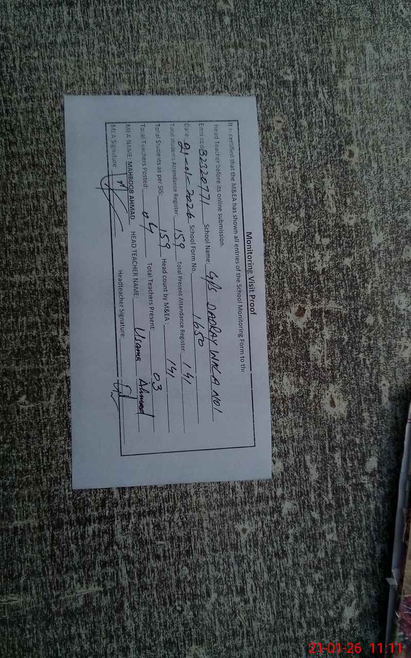 | EMIS Code: 32320771 | Name of School: GPS DADRAY WALA NO. 1 | |||