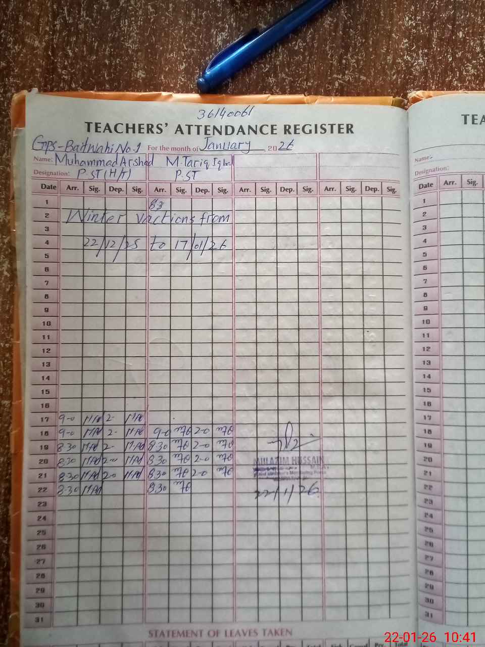 | Name: Mu**** Ar**** Designation: (School Headmaster's/Headmistress's) PST/PTC/JV Phone/Cell Number: 03**** |