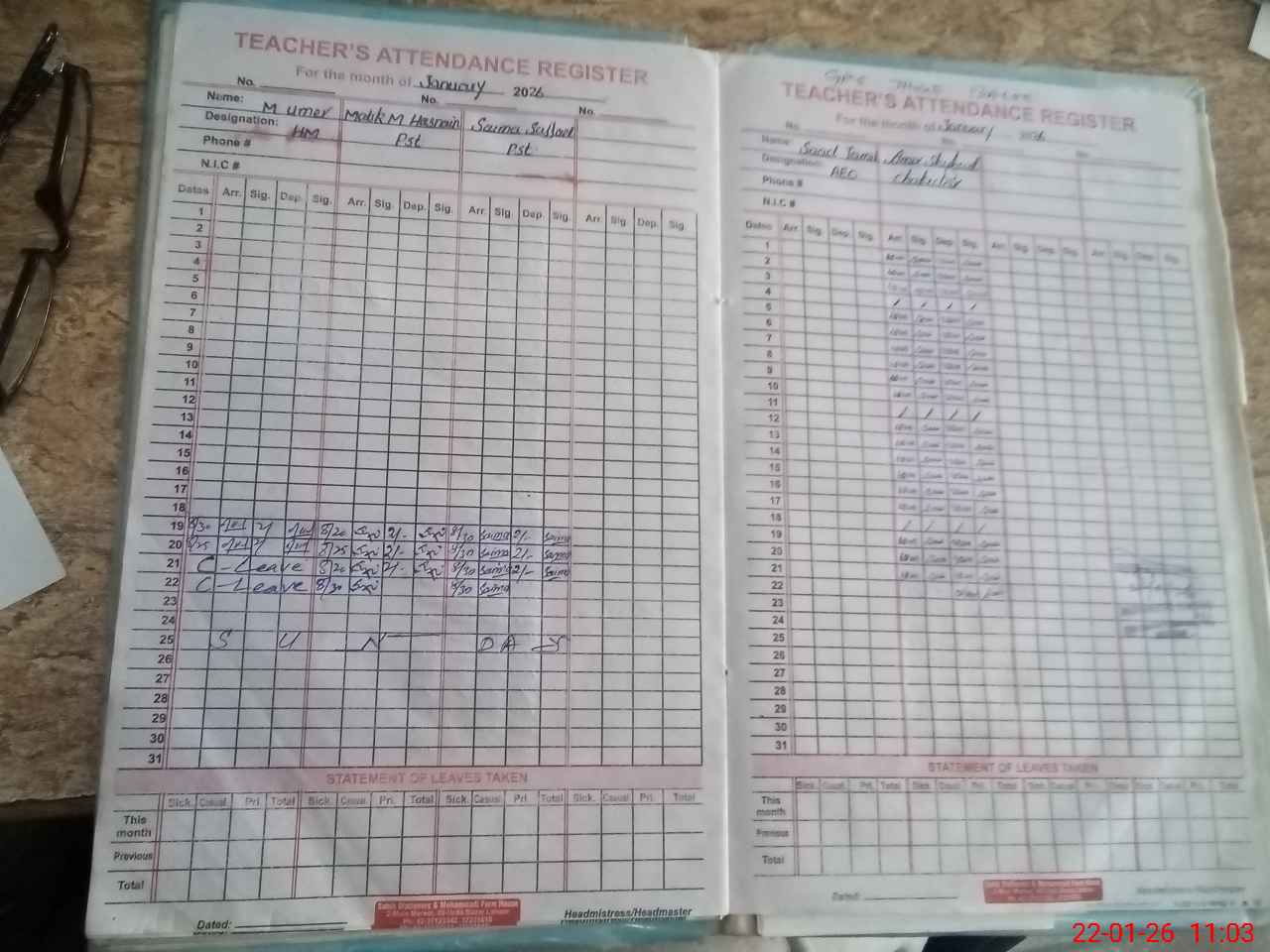 | CNIC | Full Name | Designation | R/C | Absence During Last Calender Month |