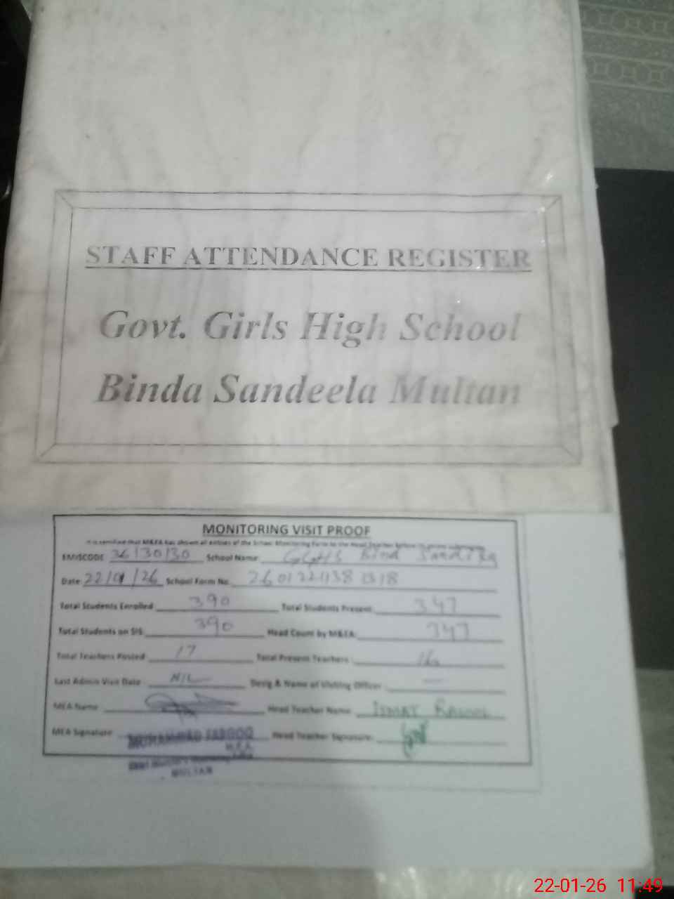| EMIS Code: 36130130 | Name of School: GGHS BINDA SUNDILA | |||